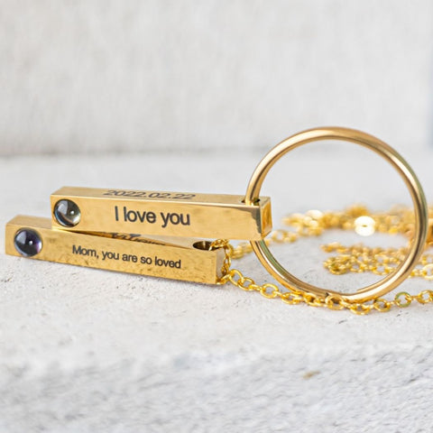 This specially designed personalized bar projection necklace for men allows male wearers to enjoy the features of a projection necklace while maintaining a more masculine appearance. With this personalized necklace for men, you can include a special photo that will be hidden away inside the pendant.